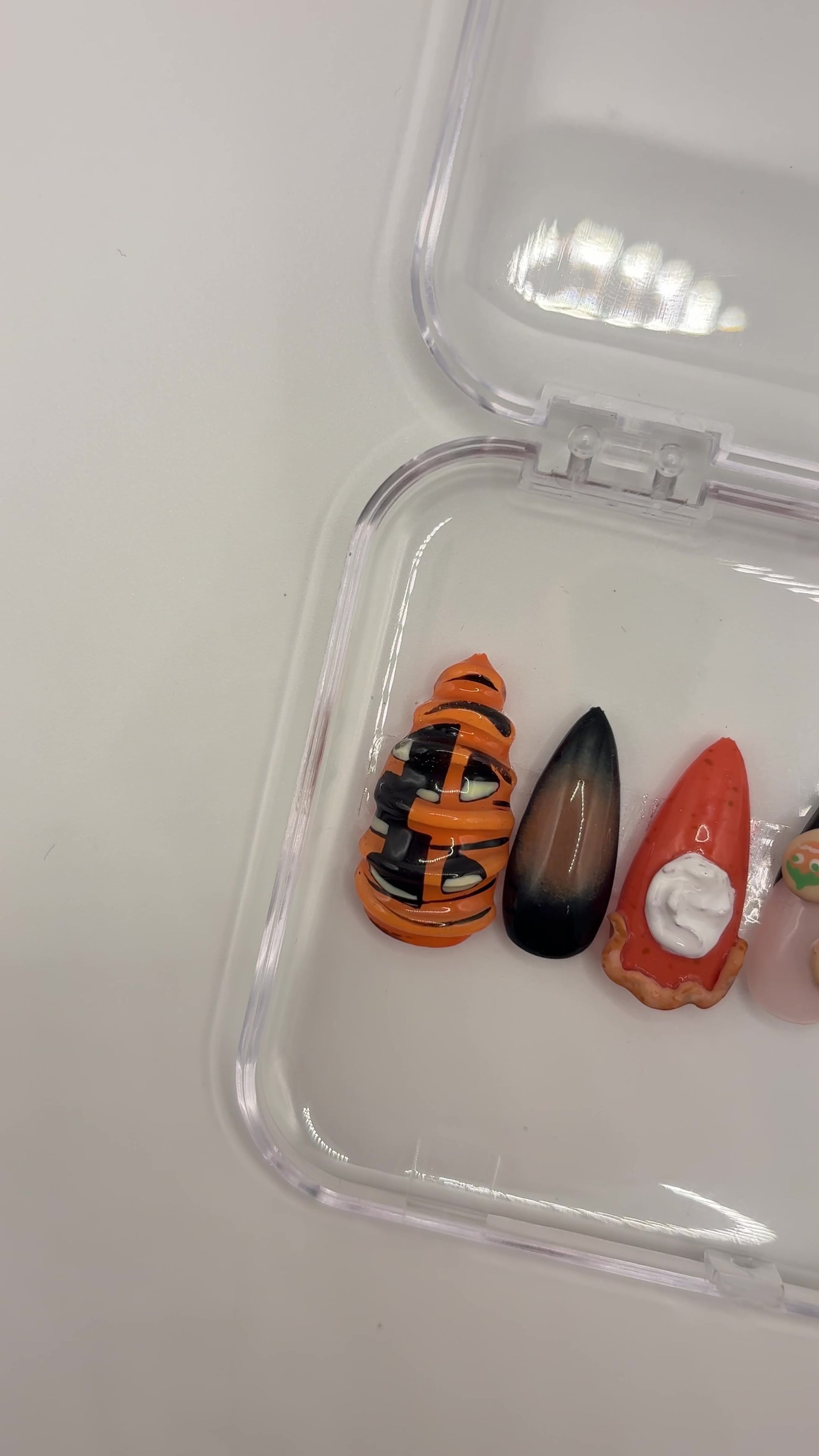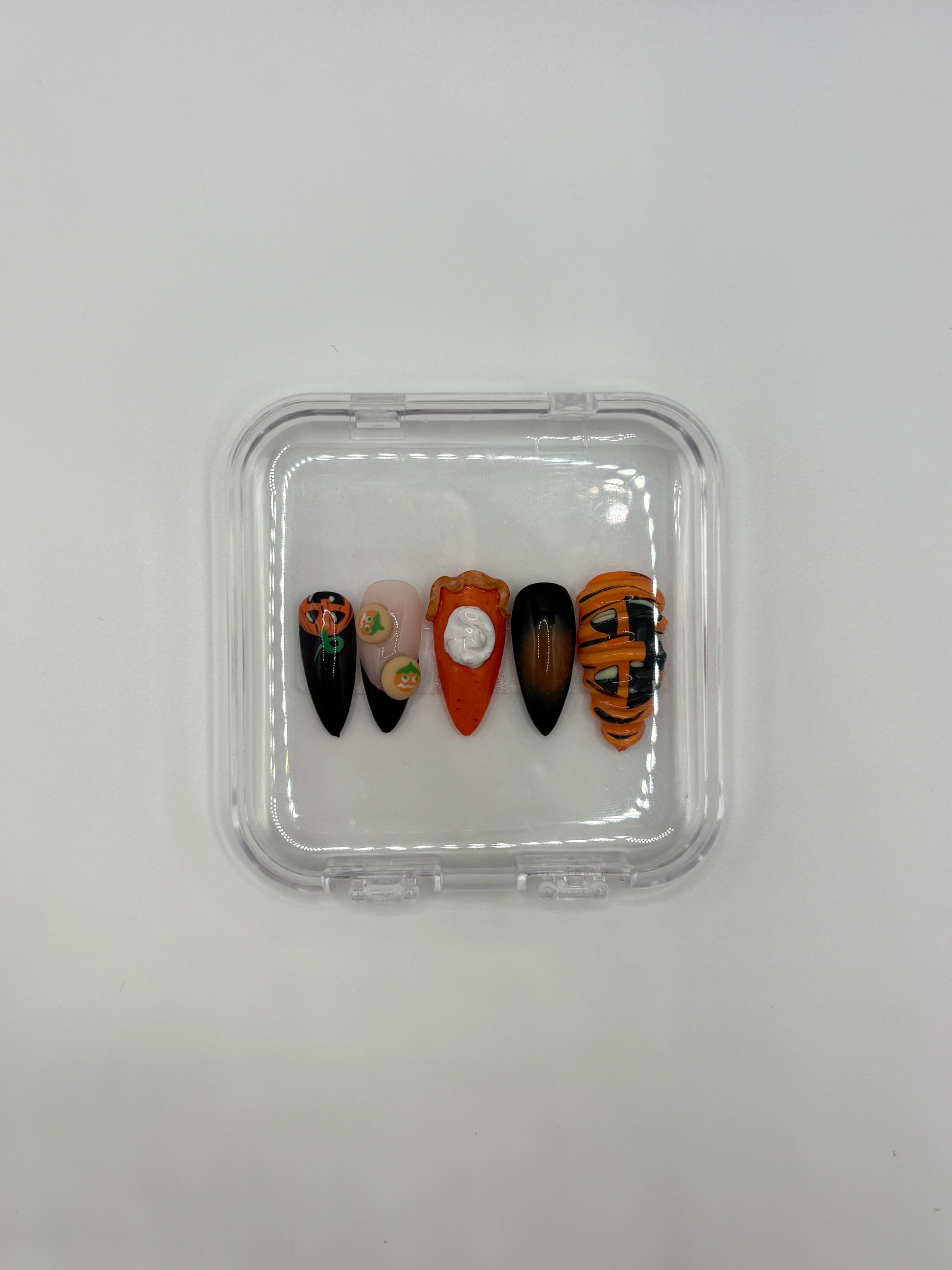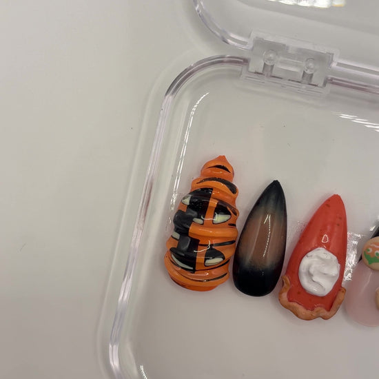 Pumpkin in many ways, and it just screams fall. This set is only offered in the shape almond, in all sizes.