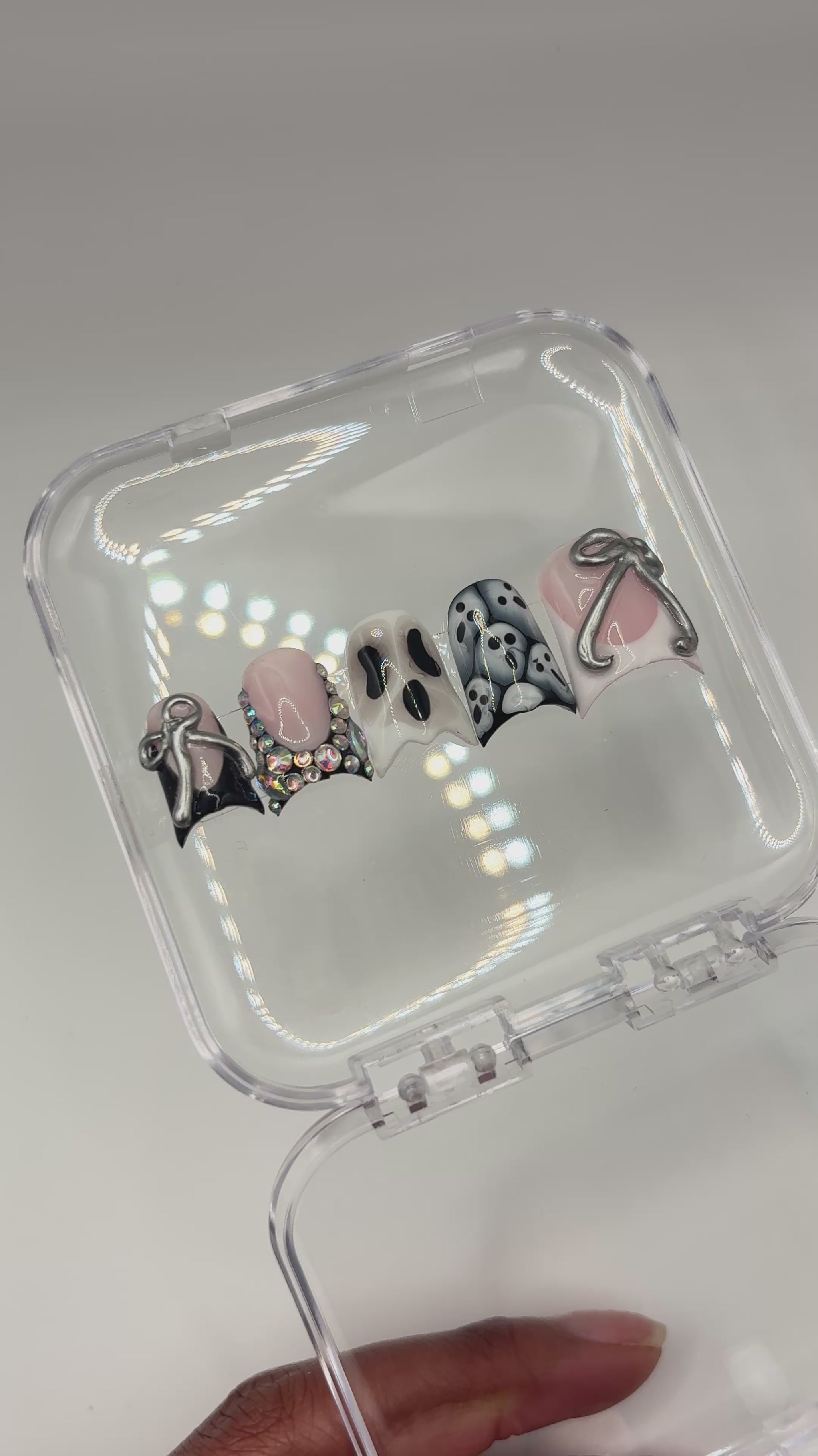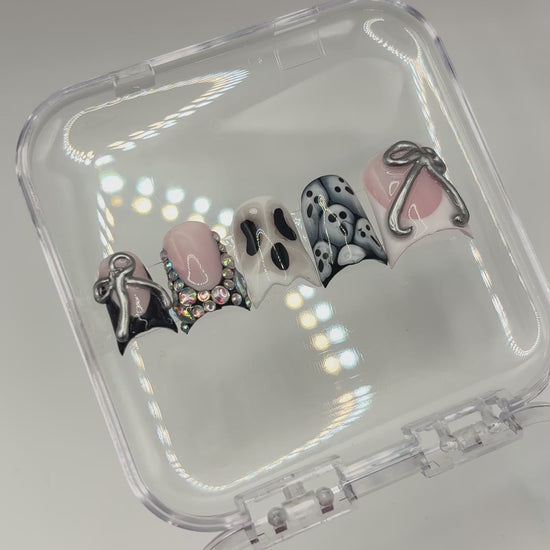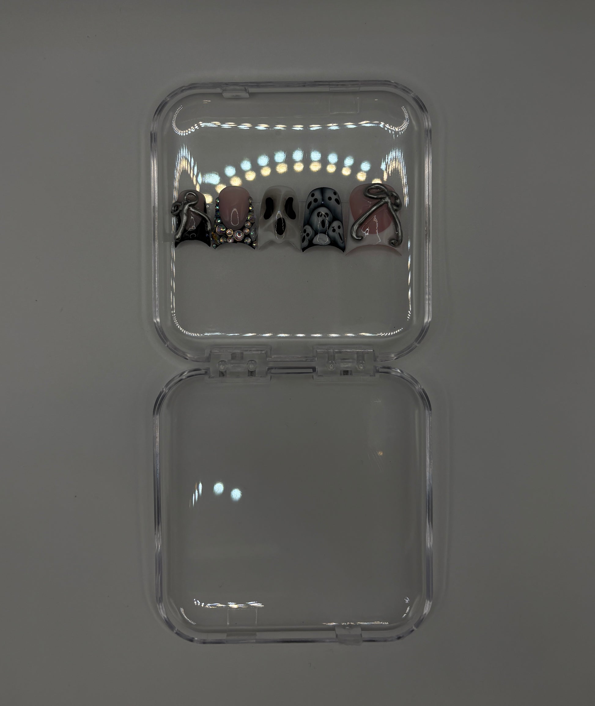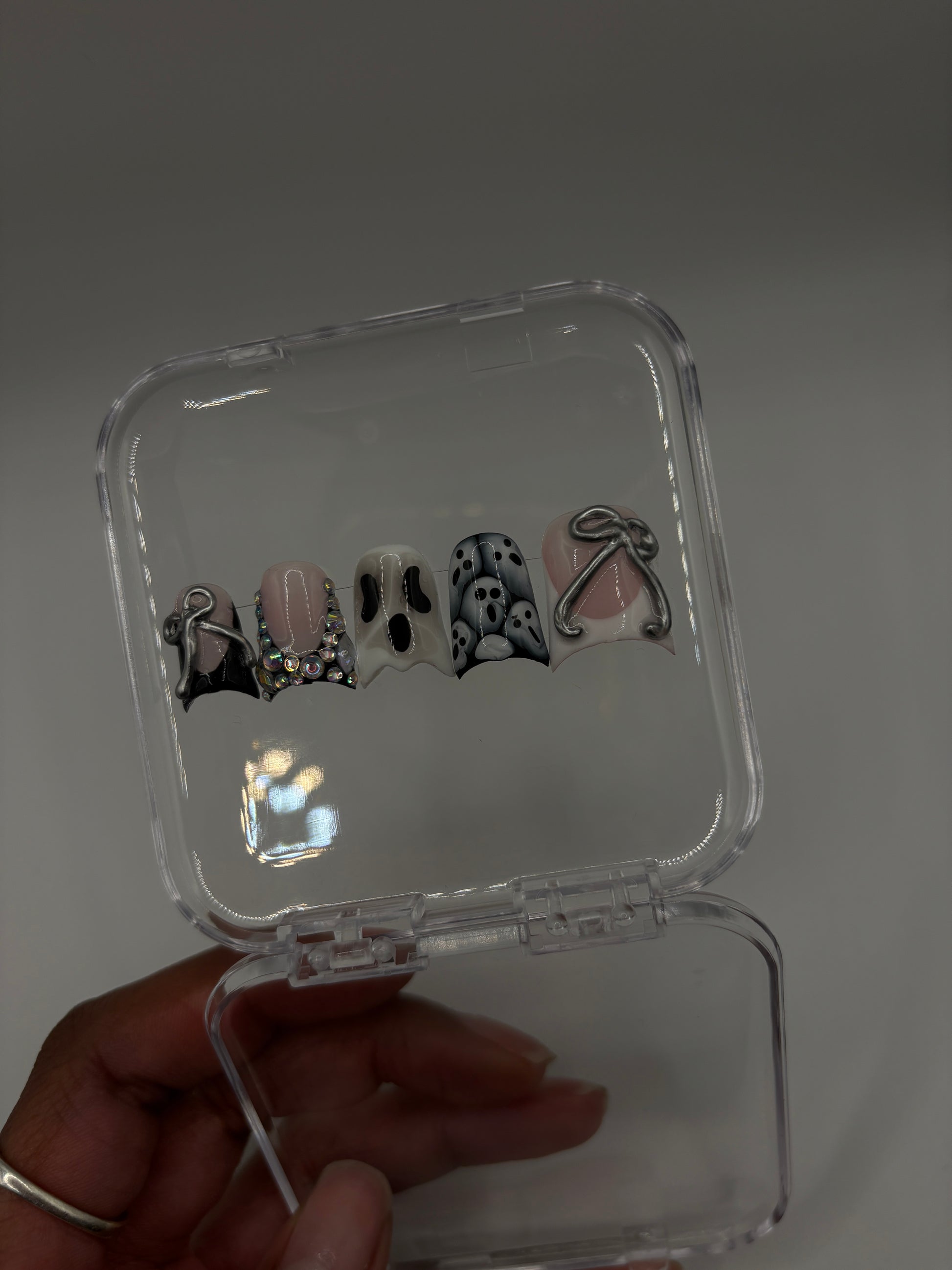 This is a Ghost-inspired spooky set! This set does come with ten nails total, being two of each nail shown in the images. This set is only offered in the shape duck.